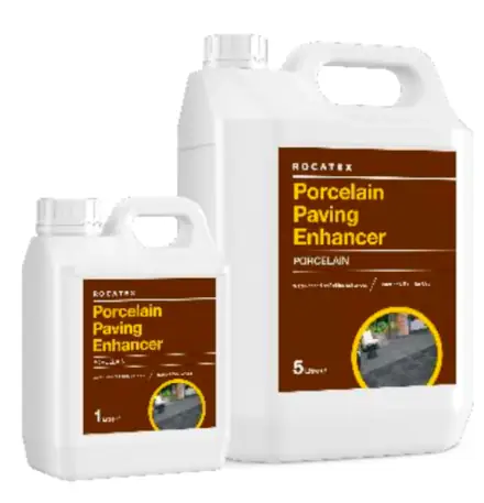 Routinely sweep and wash surfaces. Clean and mop surfaces with ROCATEX Tile & Stone Cleaner. At some stage (every 2-3 years) complete renovation of the Porcelain Paving Enhancer may be desired. In this case use ROCATEX Resin Residue Remover to strip the original coatings before re-applying. Regular cleaning with steam cleaners, jet washers and strong detergents should be avoided.